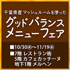 千葉県産マッシュルームを使ったグッドバランスメニューフェア会期 2025年10月30日(木)~11月19日(水) ■10/30(木)~11/19(水)