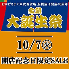 <予告>全館 大感謝祭 10/7(火)開店記念日限定SALE