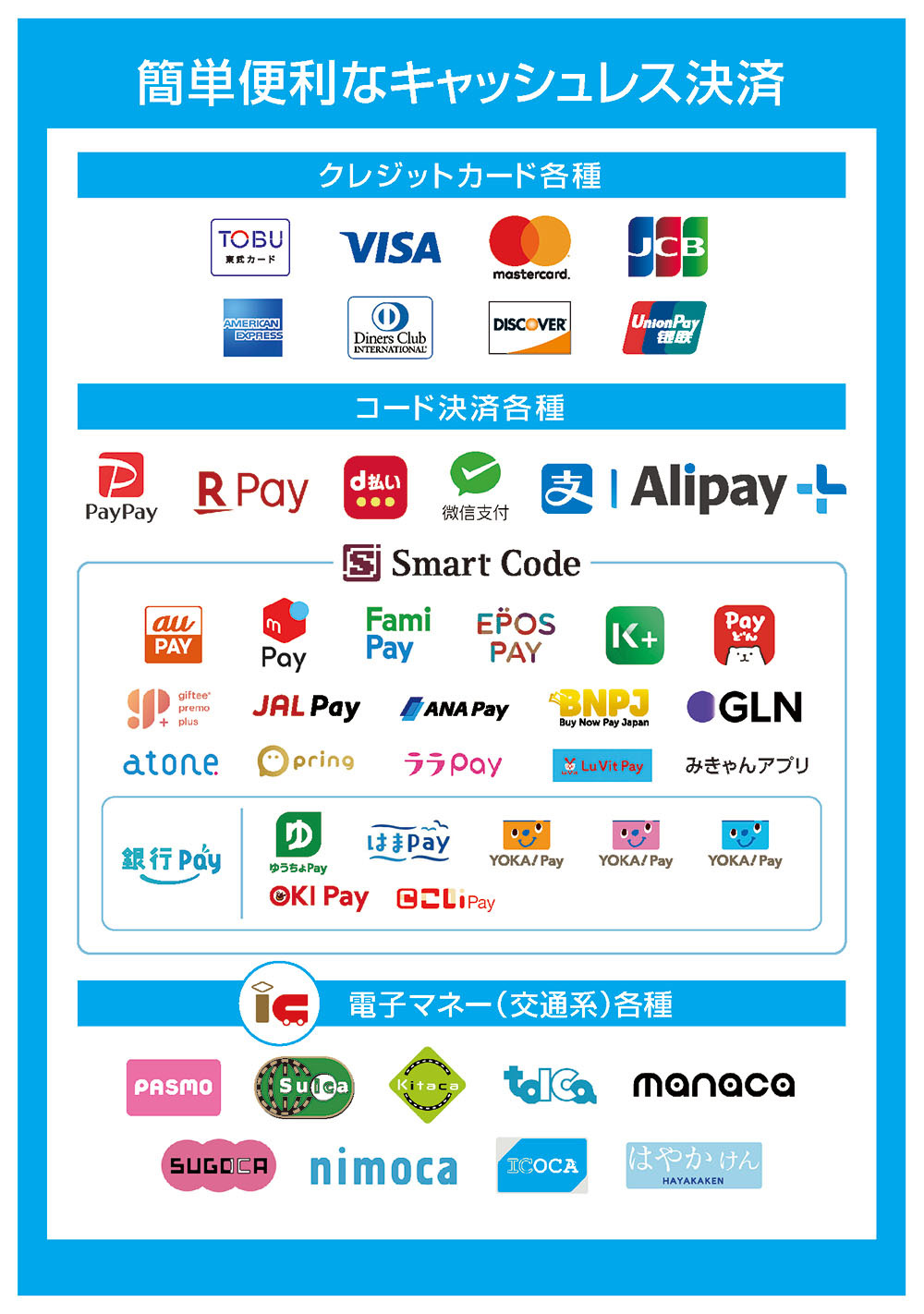全館 電子マネー・コード決済サービスについて イベント一覧 Tweet コード決済 交通系ICカード サービス 会期 2025年5月13日(火)~ お買物のお支払いの際、以下のコード決済がご利用いただけます。 コードが表示されたスマートフォンの画面をご提示ください。 ※一部、お取り扱いの異なる売場がございます。 ・旭屋書店:PayPay、メルペイ、アリペイ、ウィチャットペイがご利用いただけます。
