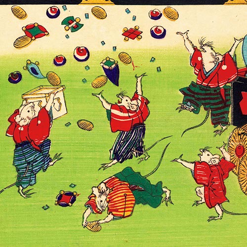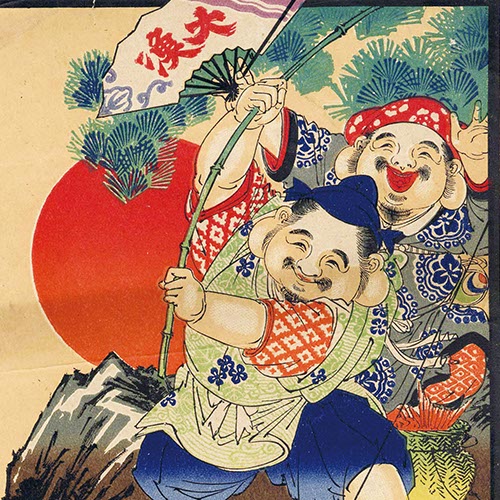 ◀福徳・商売繁盛が表現された明治~大正時代ごろの商店用引札(部分)