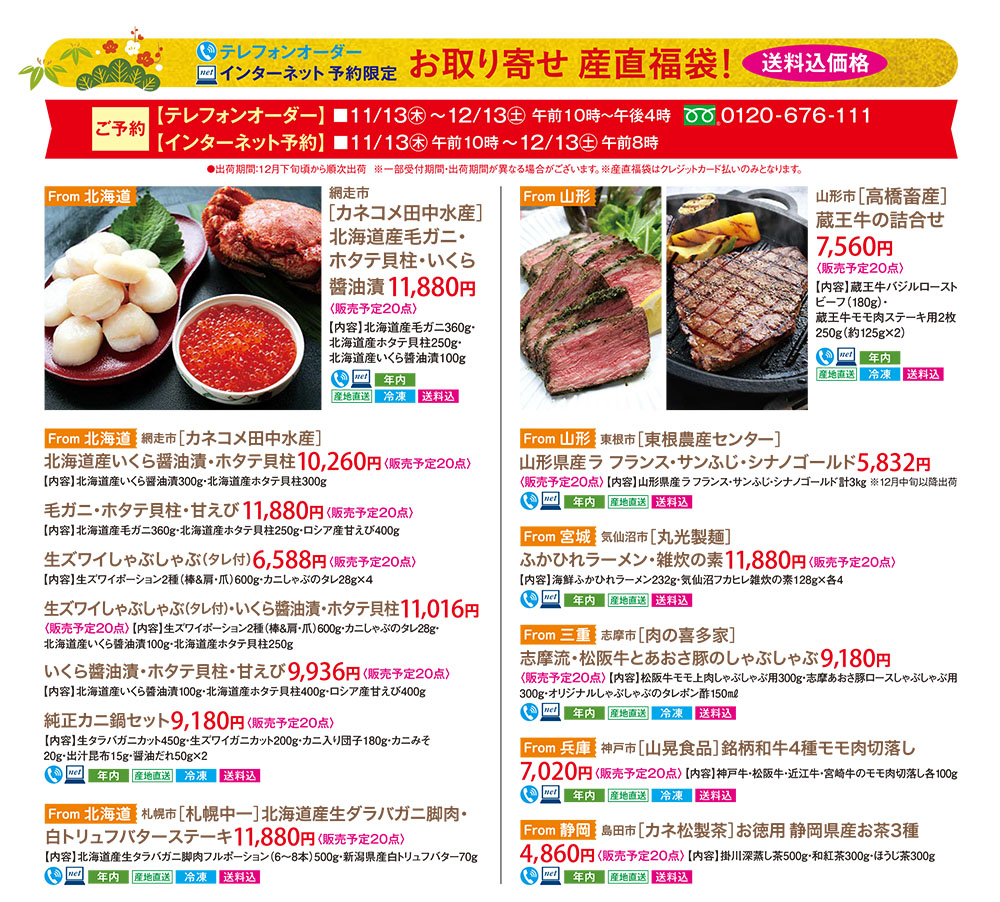 ご予約方法 各売場店頭でご予約、ご入金ください。