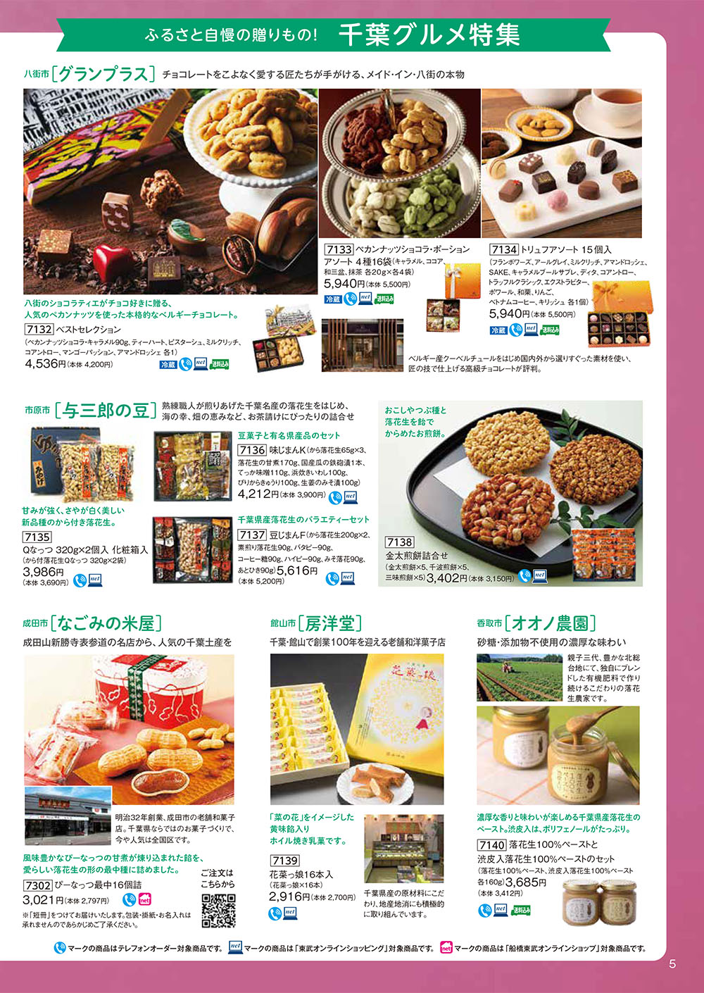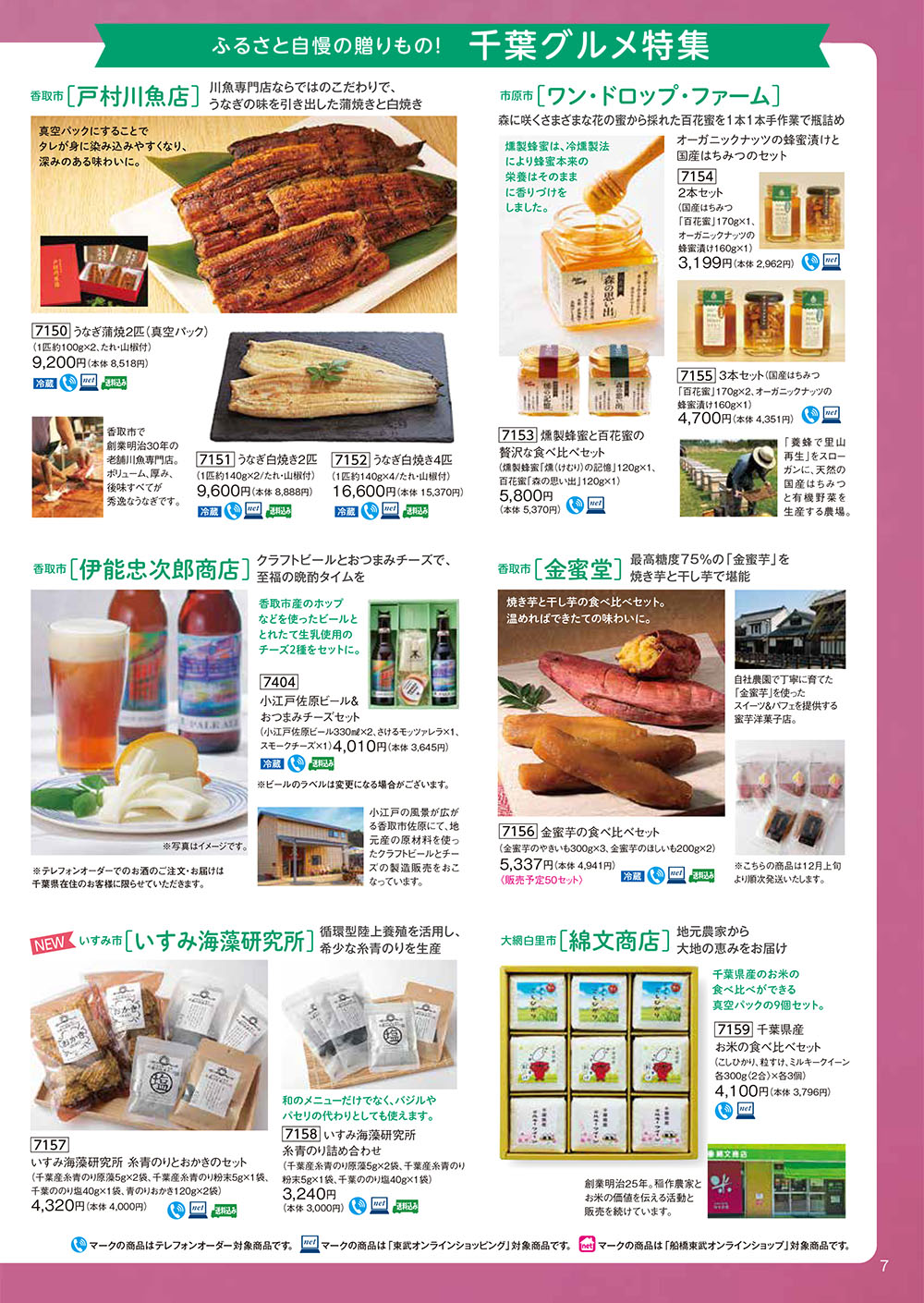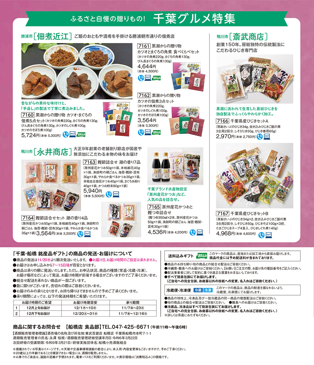 - ●テレフォンオーダーに限り代金引換手数料は無料、特別地区(千葉・東京・埼玉)への送料を一律880円、冷蔵・冷凍便は1,265円(一般便は30kgまで、冷蔵・冷凍便は15kgまで)といたします。
