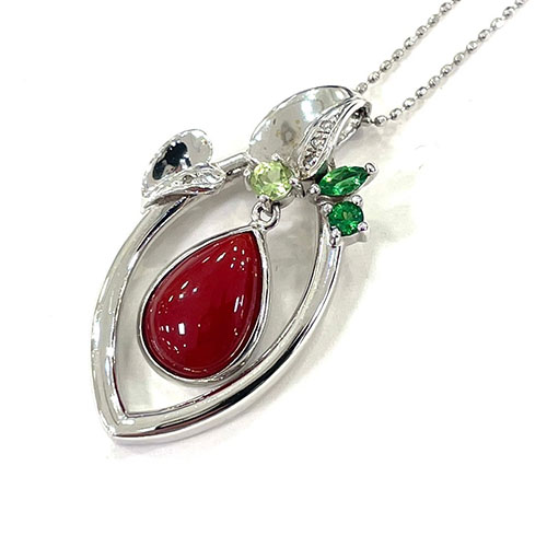 本珊瑚 K18 WG 天然石入り チェーン:PT850 43cm