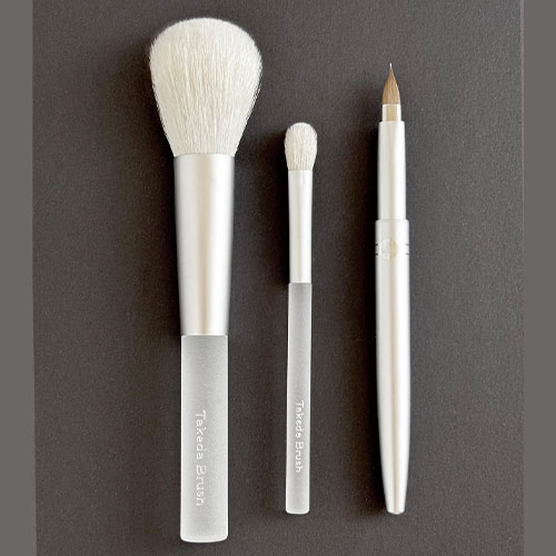 チークブラシ・アイシャドウブラシ:ヨーロッパ整毛細光峰(特細毛山羊毛)100%、アルミニウム(アルマイト加工)
