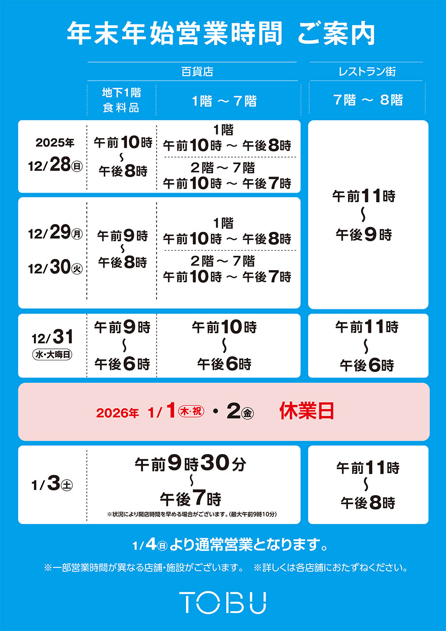 2026年東武の初売り1/3(土)スタート!!