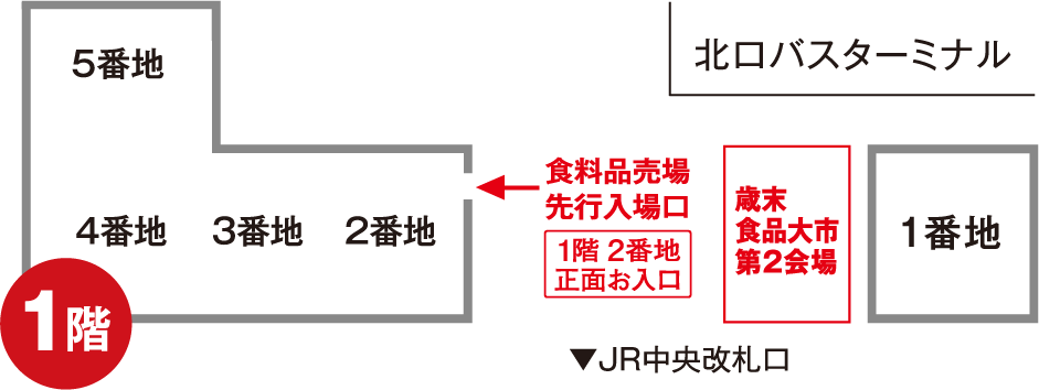 「食料品売場 先行入場口(1階 2番地)」
