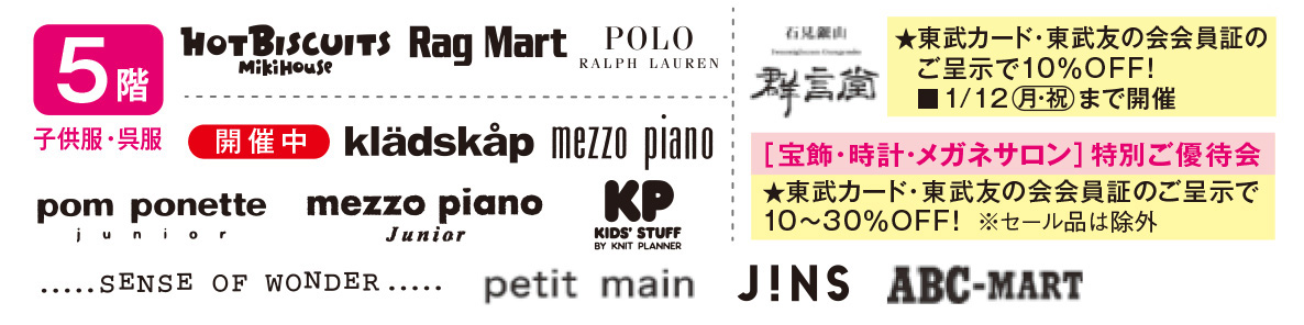 婦人服・紳士服・子供服売場限定トブポアプリ