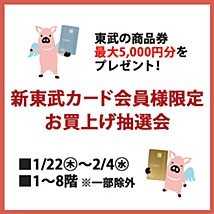 期間中、対象売場で東武カードスタンダードまたはゴールドにて1会計5,000円(税込)以上お買上げで応募券を1枚進呈。