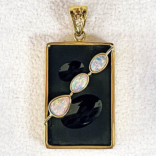 K18/オパール(5×7mm3個)・オニキス(27×17mm)・ダイヤモンド=計0.03ct