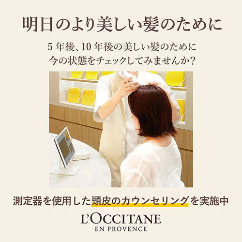 頭皮測定器を使用して、頭皮ケアアドバイスをいたします。診断結果に合わせた「頭皮用美容液サンプル3種」をプレゼント。