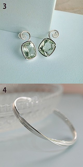 新緑の瑞々しさを思わせるグリーンクオーツが、楽しげに耳元を彩ります。小さな渦巻の「ひきめ」の曲線に、さりげない遊び心が光ります。