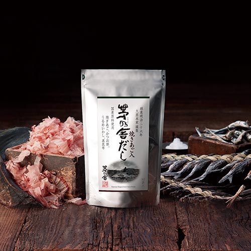 国内産焼きあご・かつお節・うるめいわし・真昆布の風味をバランスよく引き出した、本格和風だしです。だしのうまみで本格的な和食の味をお楽しみいただけます。