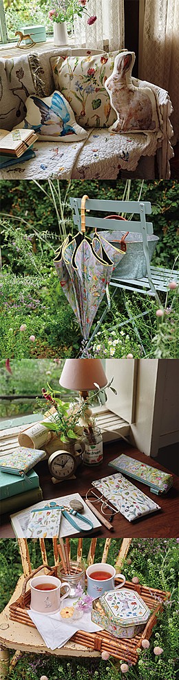 春のそよ風を感じる動植物モチーフのアイテムがラインアップ。植物や動物たちをあしらったマルチファブリックやクッションをはじめ、うさぎや草花のモチーフが愛らしいティーウエア、缶入りのお菓子など春を迎える自然の美しさが描かれたアイテムが揃います。