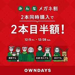 [OWNDAYS]「みんなメガネ割」スタート! 2本同時購入で2本目“半額”!!