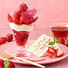 ●バレンタインパフェ ハート型にカットした苺やチョコグラッセ、Loveを描いたココアシューを...