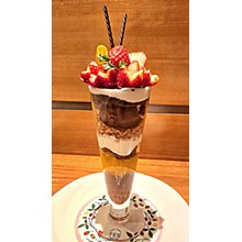 ●バレンタインパフェ ハート型にカットした苺やチョコグラッセ、Loveを描いたココアシューを...
