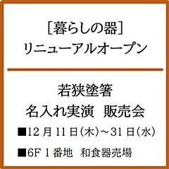 [暮らしの器]リニューアルオープン:若狭塗箸 名入れ実演 販売会