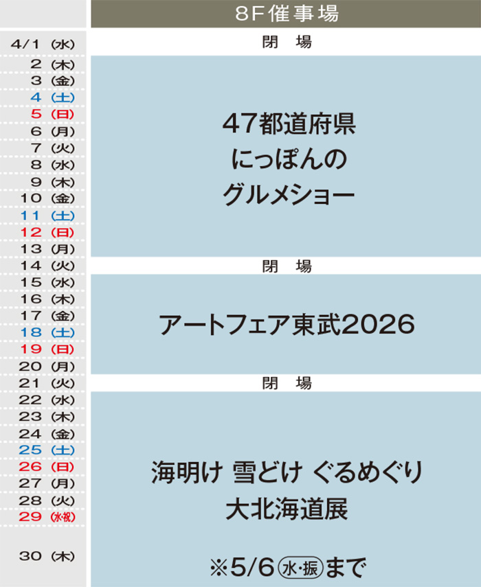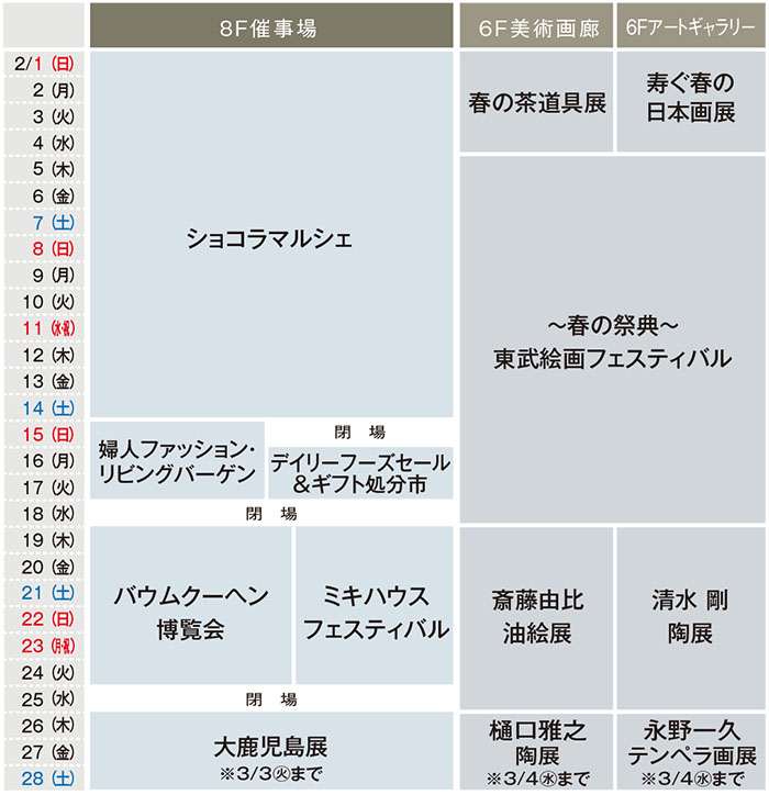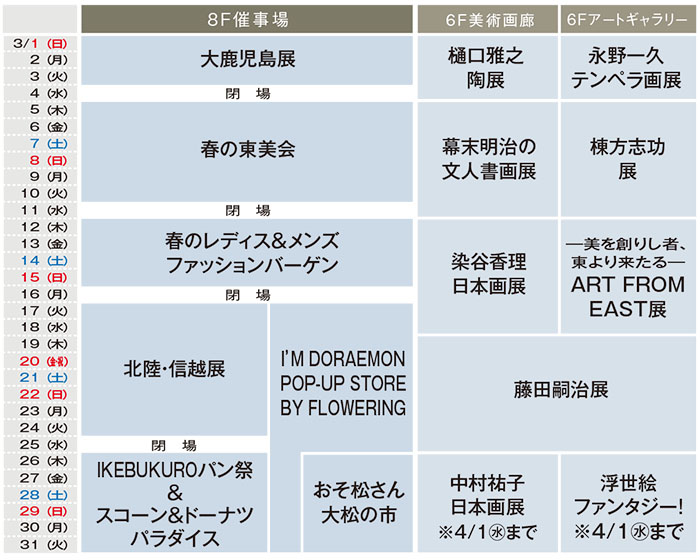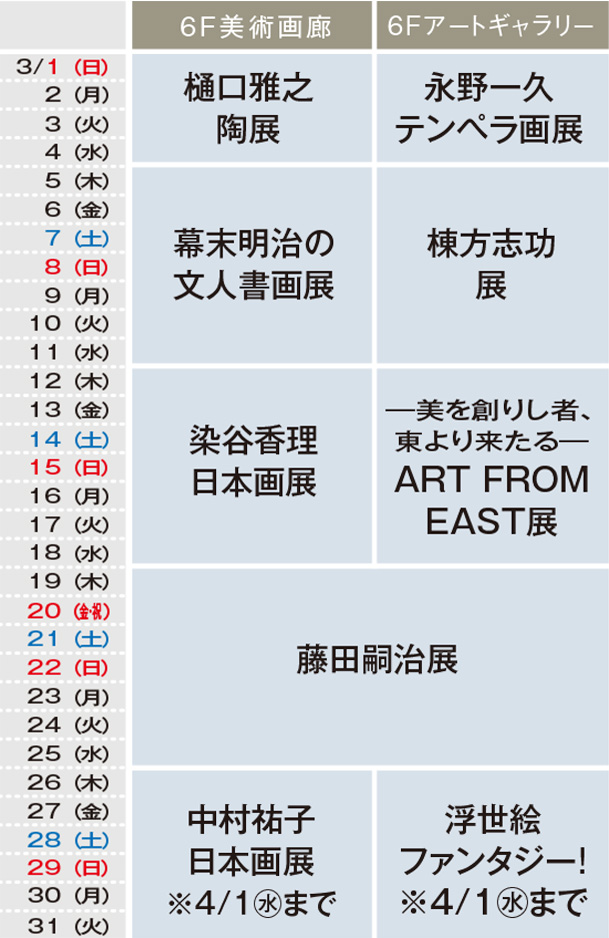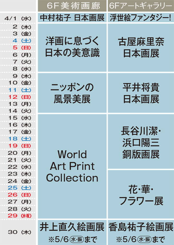 ※6F美術画廊・アートギャラリーは最終日午後5時閉場。