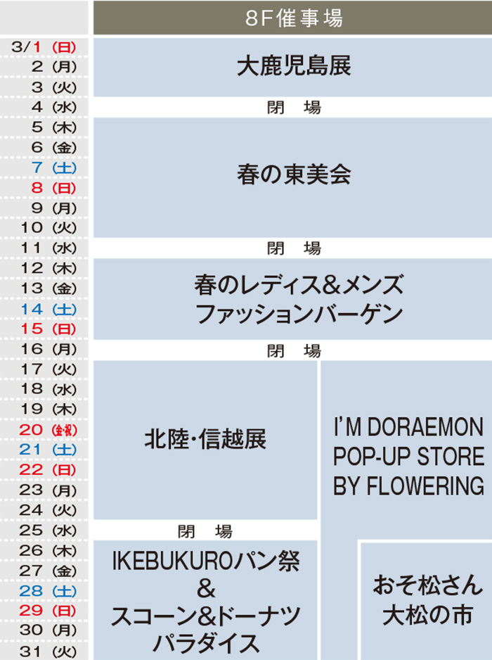 ※諸般の都合により、営業時間・催事内容が変更となる場合がございます。