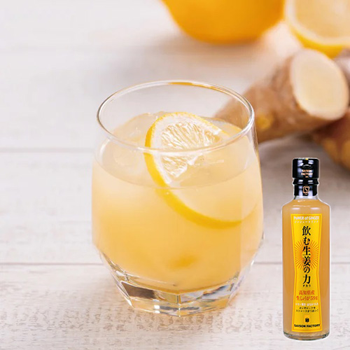 高知県産大生姜を手搾りし、はちみつとレモン果汁だけで仕上げたシンプルなドリンク。しょうがの辛みが体の中にしみわたり、クセになる味わいです。