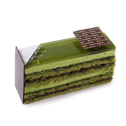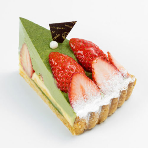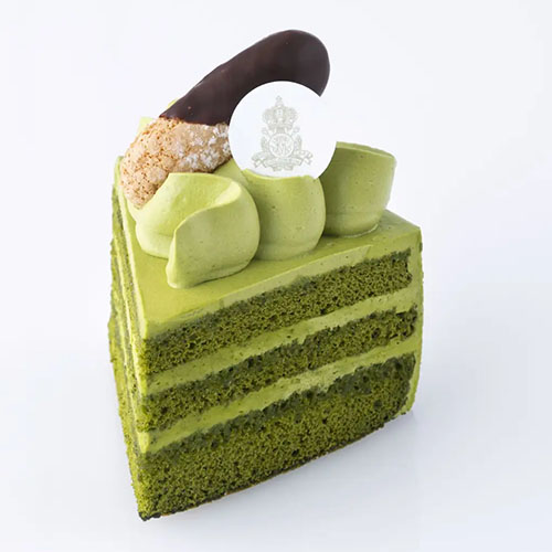 宇治抹茶の豊かな風味を生かしたムースに、スポンジ、ガナッシュを繊細に重ねました。味わい深いケーキです。