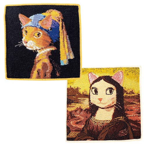 歴史的名画を猫に置き換えた、遊び心のあるデザイン。