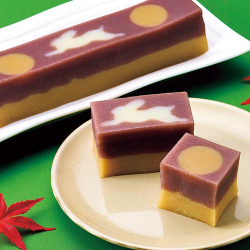 香ばしいきなこういろに、こしあんういろを重ねた2層仕立て。上面には、白うさぎと満月を並べました。