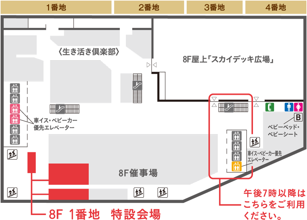 ※午後7時以降は3番地エレベーター・エスカレーターをご利用ください。
