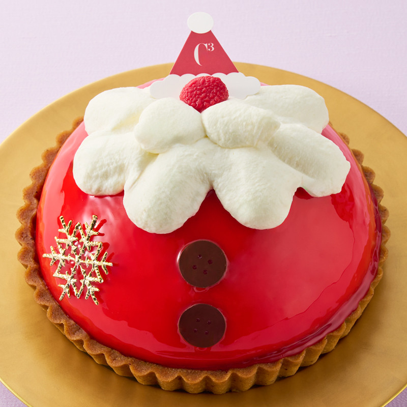 テーブルを華やかに彩る真っ赤なサンタさん。北海道産のマスカルポーネを使ったムースと、いちごのジュレが絶妙にマッチするティラミスケーキ。