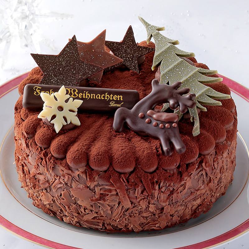 風味豊かなガナッシュクリームをショコラのスポンジでサンドしたデメルの代表的なトルテ。ツリーや雪の結晶のチョコレートが聖夜を盛り上げます。