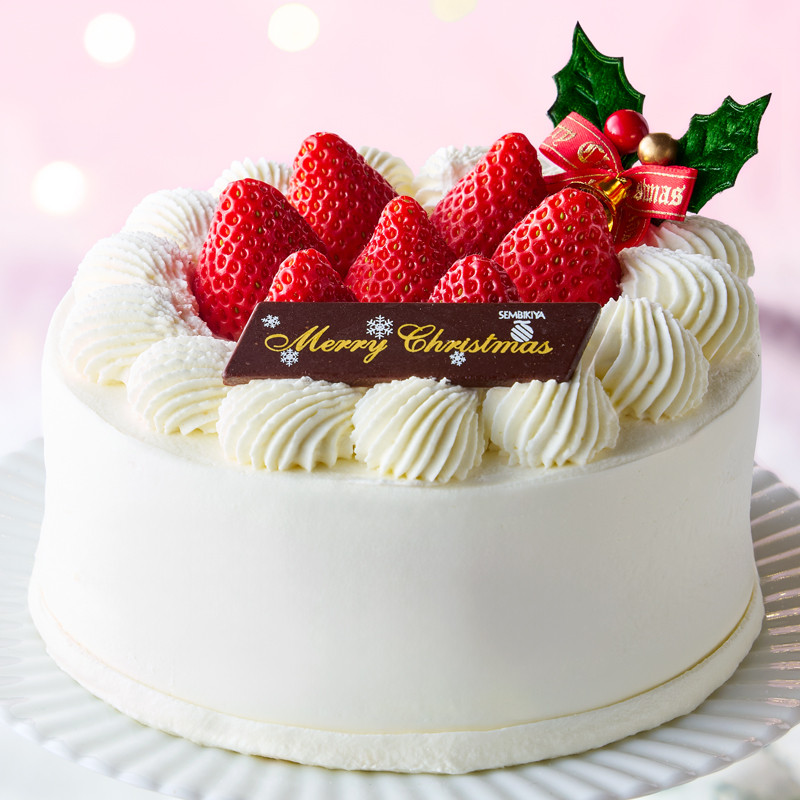 2層のふわふわのスポンジケーキの間に、スライスしたいちごとクリームシャンティをサンド。柊のオーナメントといちごで華やかに飾り付けました。
