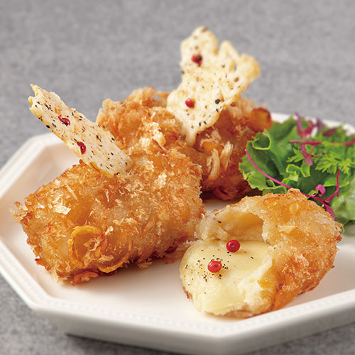 生クリーム仕立てのクリームに、粗挽きペッパーと4種のチーズを加えたコロッケ。