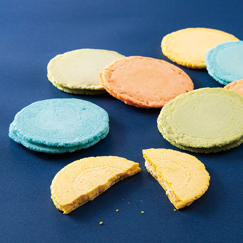 サクサクのえびせんべいにカマンベールやブルーチーズなど4種のチーズクリームをサンド。