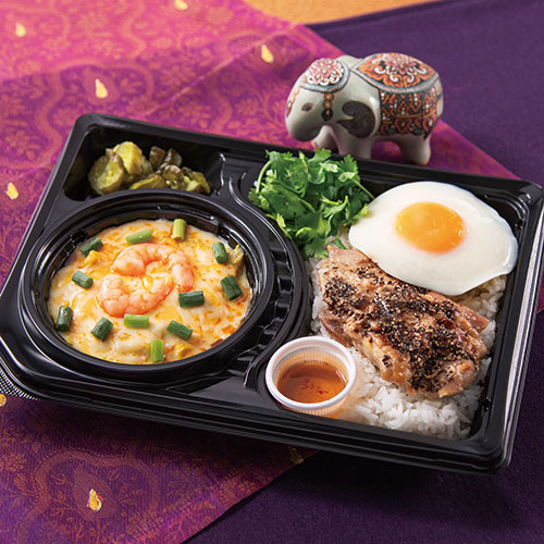 ペッパーがきいたガイヤーンも味わえるアジアン弁当。