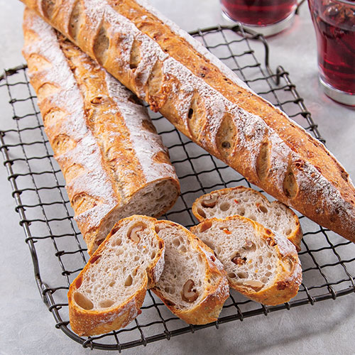 カリッ、もっちり! チーズとペッパーを練り込んで焼き上げた限定バゲットは、ホットワインにもよく合います。