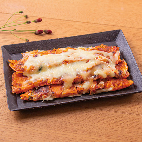 もちもち生地のキムチ入りチヂミに濃厚チーズをかけた、韓国料理好きも納得の一品です。