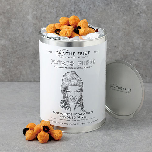 クワトロチーズフレーバーのポテトパフに、乾燥塩蔵オリーブを加えました。手土産にも喜ばれること間違いなし!