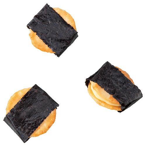 食べ出したら止まらない! 香り高い国産海苔とおかきで、ほんのり甘いチーズクリームを挟みました。