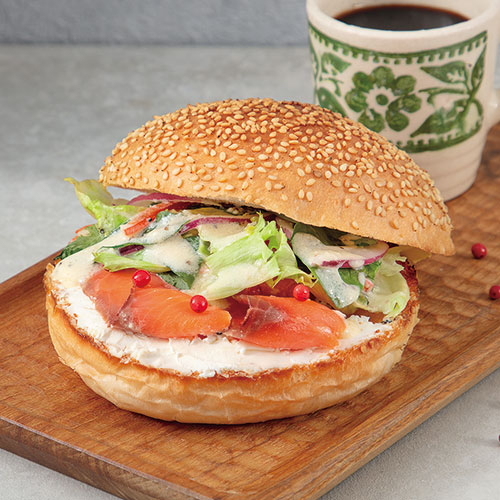 クリームチーズとサーモン、シャキシャキのレタスをサンド。 ピンクペッパーが味わいに深みをプラスします。