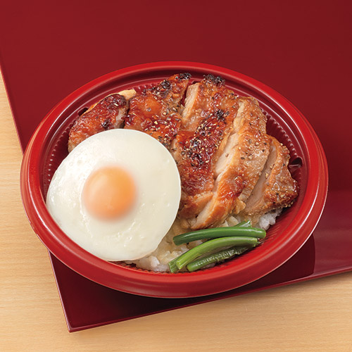 生姜の香りが食欲をそそる!特製タレに漬け込んだ鶏ももステーキと、目玉焼きをドーンとのせた大満足の一品。