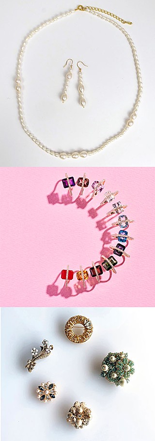 クラシカルな装飾性を感じさせるビーズ刺繡のブローチやネックレスと、洗練されたミニマルな天然石ジュエリーをご紹介いたします。