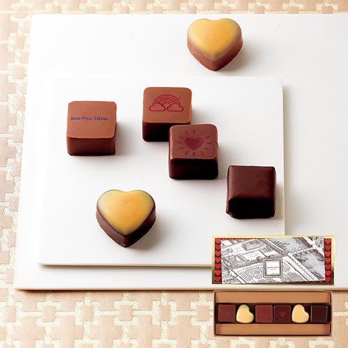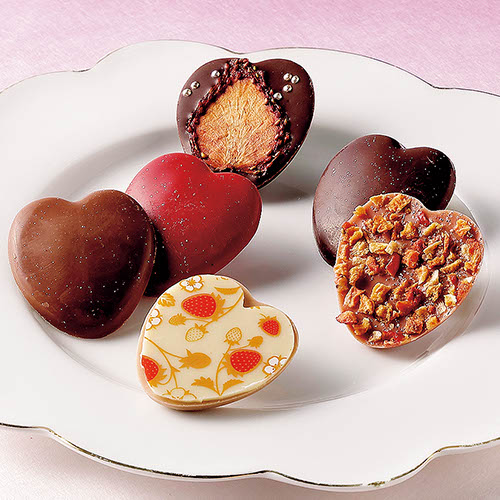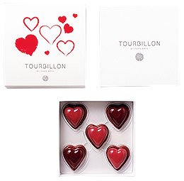 日本の柑橘を使った新フレーバーのクール ココロ アグリュム キャラメルや、ゴロゴロとしたナッツの食感が楽しいプラリネ ピスターシュなど。可愛いハート型のパッケージに5種をアソート。