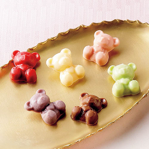 ミルク、ブルーベリー、ライム、ホワイト、ストロベリー、ラズベリーの風味豊かで愛らしい本格チョコレート。