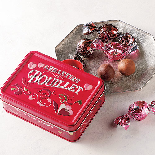 華やかで楽しいピンクの旅行カバンをモチーフにした缶に、2種のトリュフを詰合せた新作ショコラ。