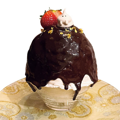 職人技が光る小さなハート型の板チョコレートを苺に見立てました。