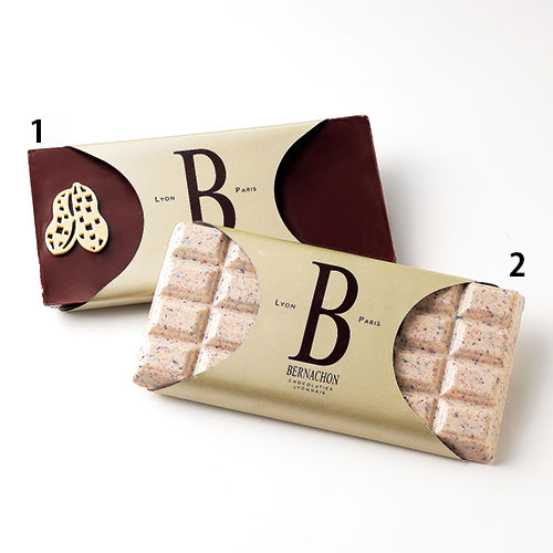 ピーナッツのプラリネにピーナッツ入りキャラメルを重ねたカカウエット ノワールと、3種のベリーとホワイトチョコを合わせたトゥティ フルティ イヴォワール。