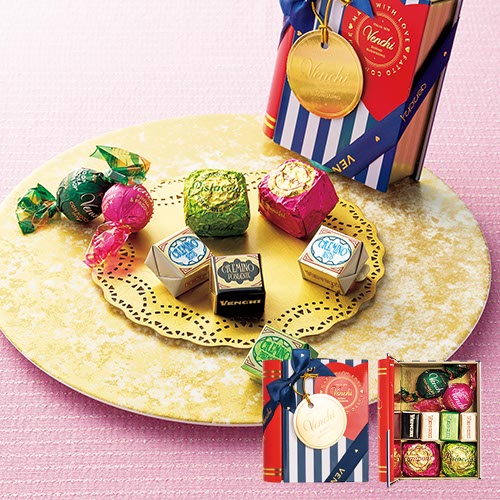 バレンタインシーズン限定。青と白のストライプと真っ赤なハートが印象的なブック型ギフト缶に、7種類8個のイタリアンチョコレートをバランス良くアソートしました。