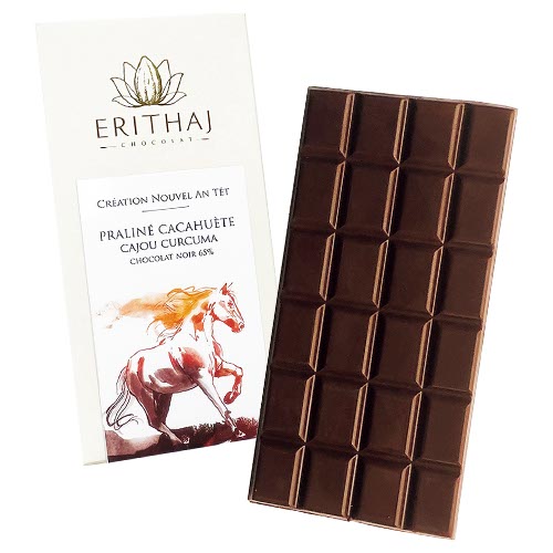 バニラ風味のホワイトチョコベースのプラリネを、ダークチョコでコーティング。