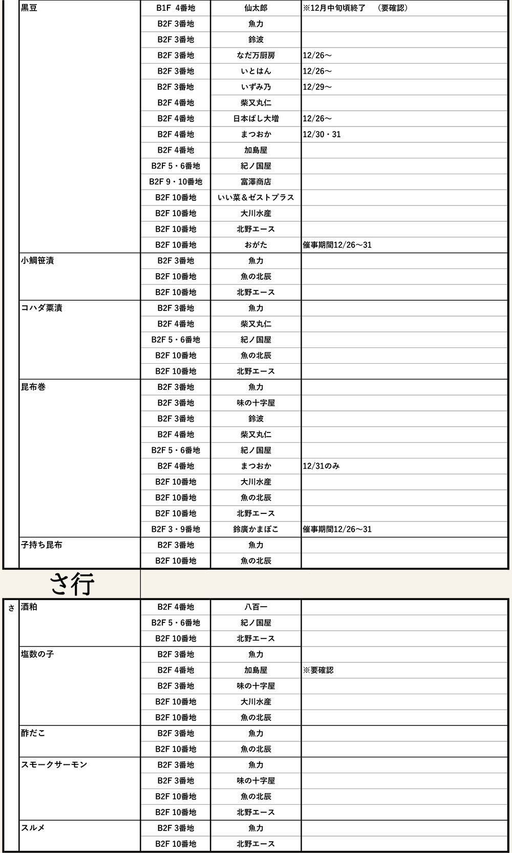 ◼12/26(金)~31(水) ◼B1F 3番地 ハナサンテラス