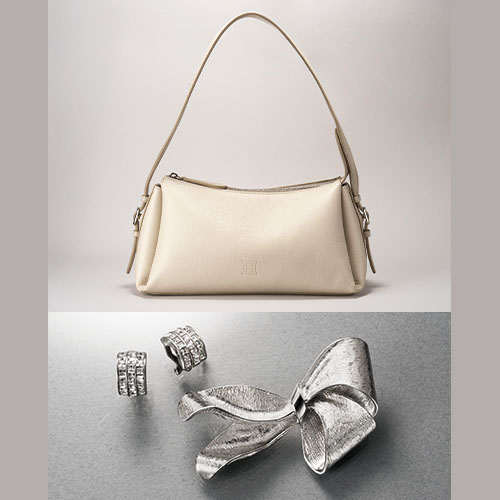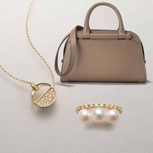 上質レザーのバッグとダイヤモンドのジュエリーで、クラス感アップ。